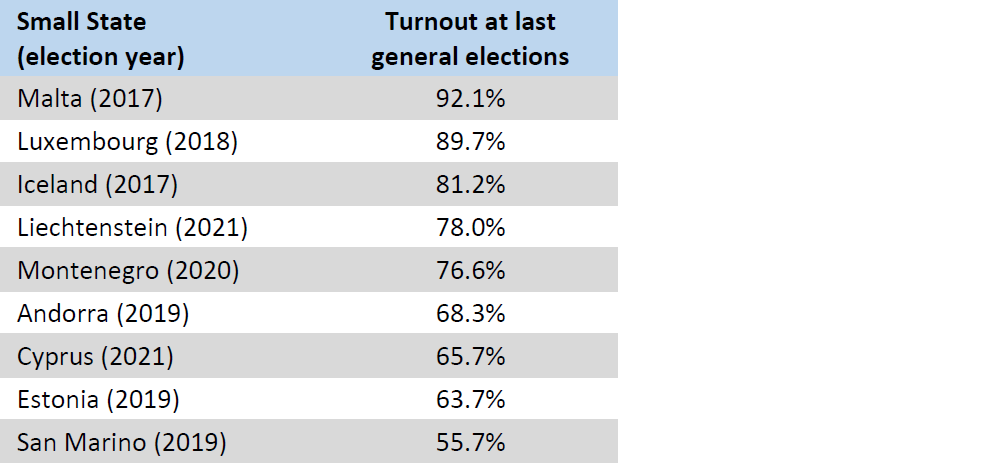 Populism has spread over the world – to what degree, however, depends (also) on the definition of populism. The electoral strength of populist parties in turn heavily depends on opportunity structures, but also on the national party system. As a consequence, in some of the European small states, there has not been an emergence of populist parties, sometimes simply because the party system does not allow or foster the emergence of new parties in general. And even if the statutory framework as such does not exclude new parties from emerging, the current situation within these countries is unfavourable for the emergence of populist parties, or for that matter, any other parties. Liechtenstein, Luxembourg, Andorra and, to some degree, also Malta fall into this category. That is not to say that there is no populism and extremism existent in these countries. Rather, these anti-establishment sentiments have not (yet) been organized in the form of parties or influential movements.